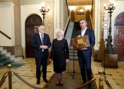 Министр финансов Арвилс Ашераденс сегодня передал законопроект о государственном бюджете на 2025 год председателю Сейма Дайге Миерине.